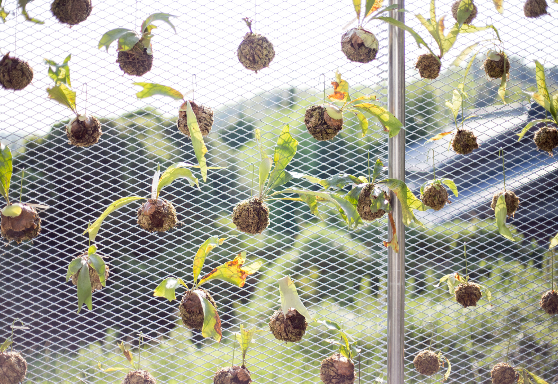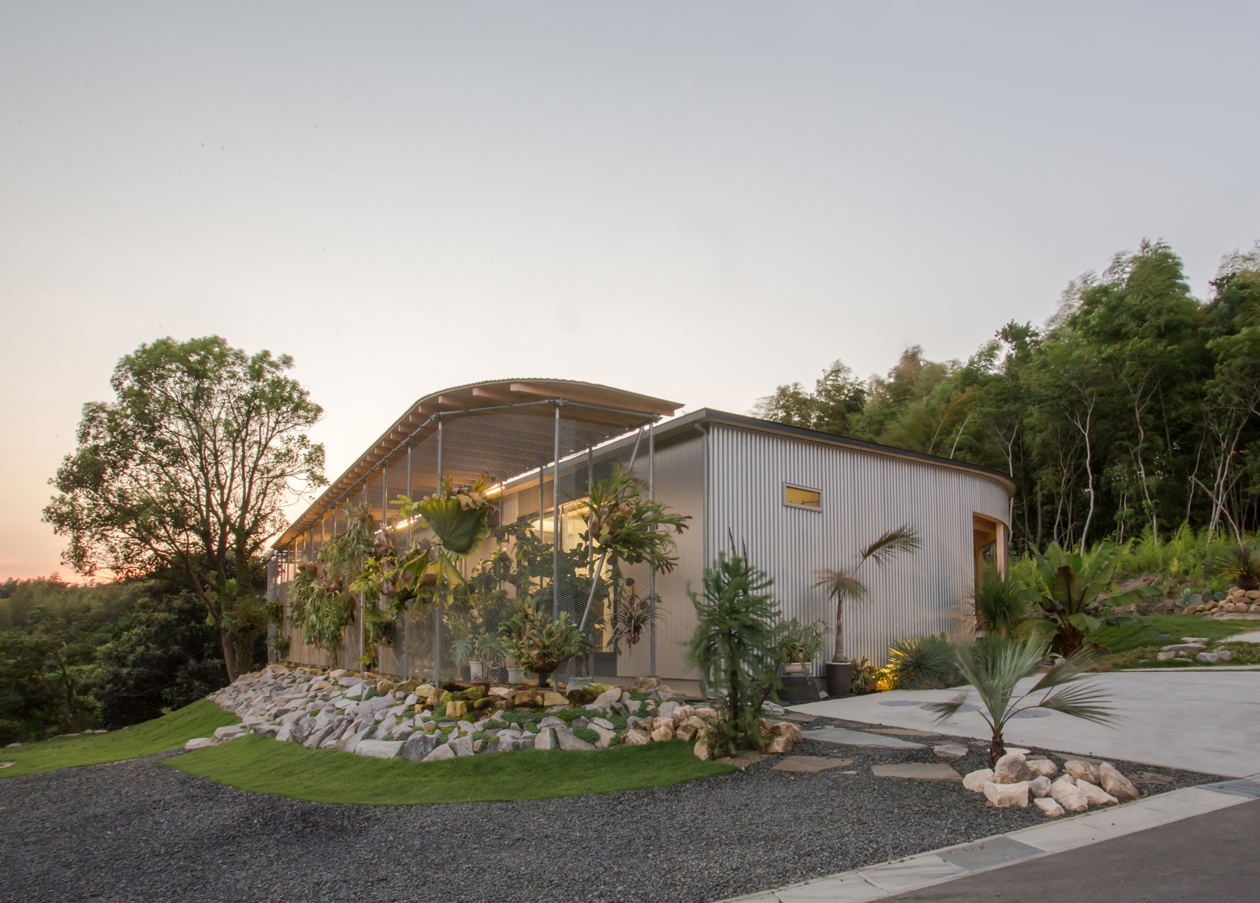 一家で熱帯植物の栽培を行う施主のための二世帯住宅の計画。地方の市街化調整区域では農地や宅地が混在し、それらを一体として所有する事例が散見される。本計画の建主も、隣接する「宅地」「農地(接道あり)」「農地(接道なし)」という3筆の土地からなる敷地を購入した。それらは一見ひとつの土地のようであるが、そこには机上で定められた見えない隣地境界線が引かれている。隣地境界線に着目することで、地方の市街化調整区域における農地と宅地の新たな風景の提案につながるのではないかと考えた。