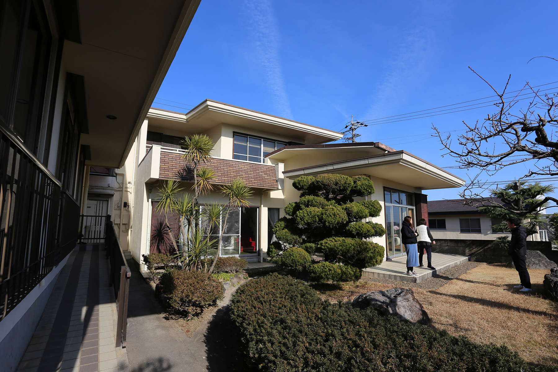 本計画では、「壁」と開口の関係性に着目した。躯体をそのままに古い建具を新たな規格サイズの建具に替えようとすると、躯体と建具の間にスキマができてしまう。このスキマを塞いで違和感無く壁を仕上げることもできるが、歴史がつくるこのスキマを建築に昇華させたいと思い、全ての建具と躯体の間にできるL型のスキマに奥行きをもたせ内外を貫いた。これらはデッキや雨除け、母屋からの視線の緩和など各諸室の用途の拡張や外部におけるアクティビティを誘発する機能を持つ。この歴史のスキマに与えた厚みにより、面として境界然としていた「壁」と開口の関係に内外のつながりがもたらされ、境界が曖昧になる。ほぼ全ての壁(躯体)の変更ができない中で、小さなスキマを拡張することによって住まい方に奥行きを与えるという、最小操作で最大効果の獲得を目指した。